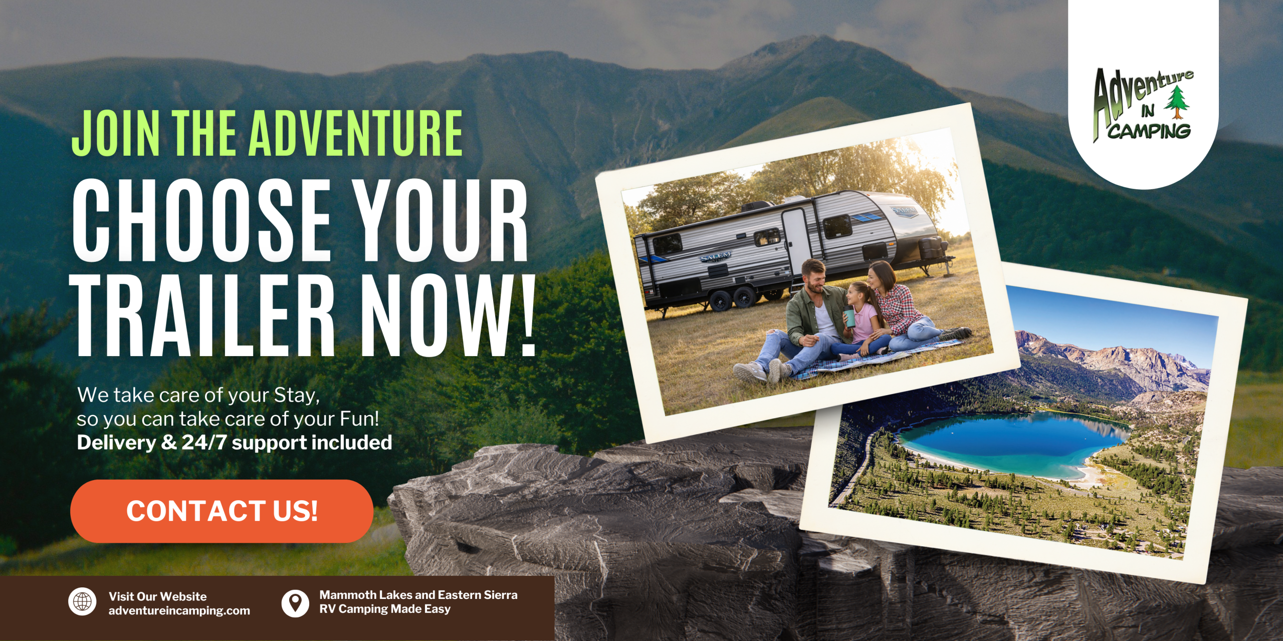 With Adventure in Camping, your RV trailer is delivered directly to your campground, fully set up and ready when you arrive. There’s no towing, no stress, and no setup waiting at the end of a long drive.