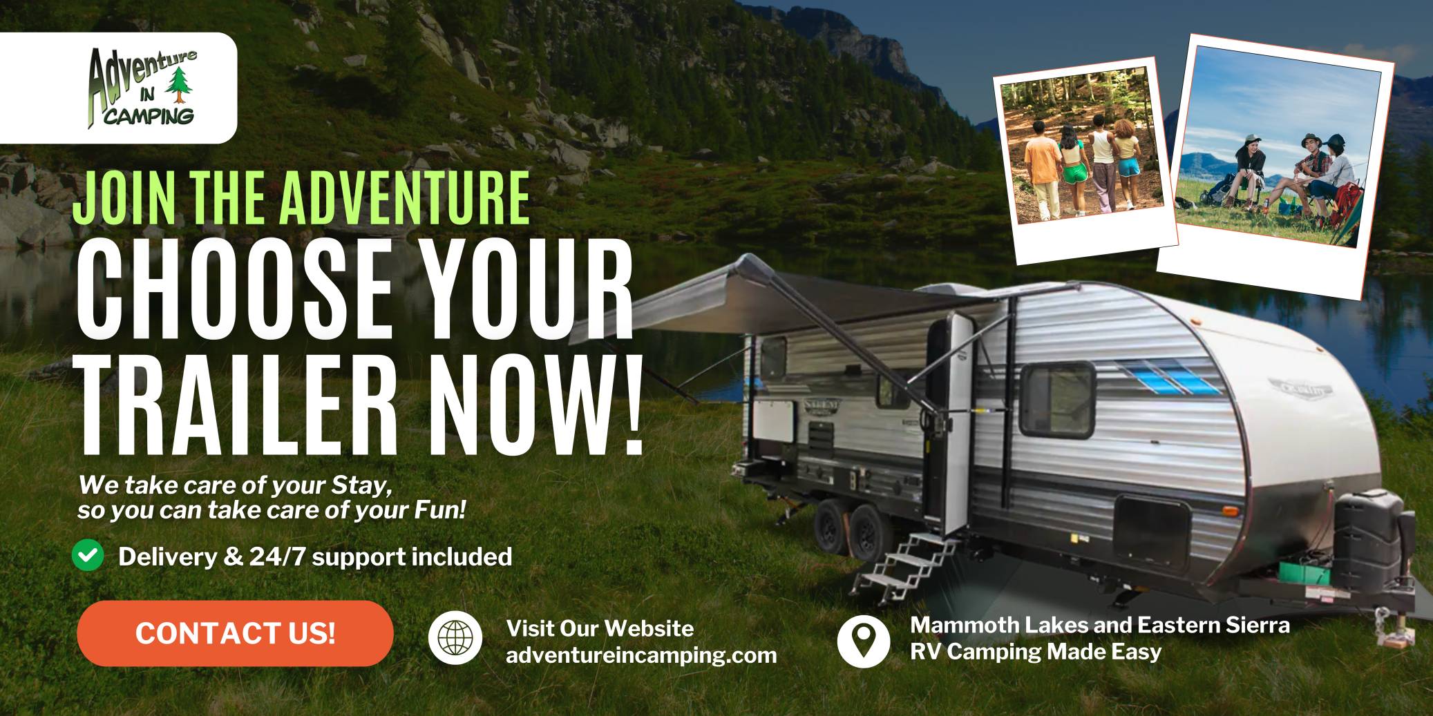 Explore RV rentals and travel trailers with Adventure in Camping and reserve early to ensure your Mammoth Lakes adventure unfolds exactly as planned.